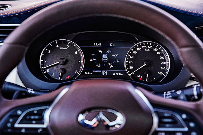 Внутри Infiniti — кресла из полуанилиновой кожи, вставки из натурального клена и множество опций. Например, QX50 можно заказать с системой кругового обзора, огромным проекционным дисплеем и продвинутой системой мультимедиа, которая понимает все современные цифровые форматы.