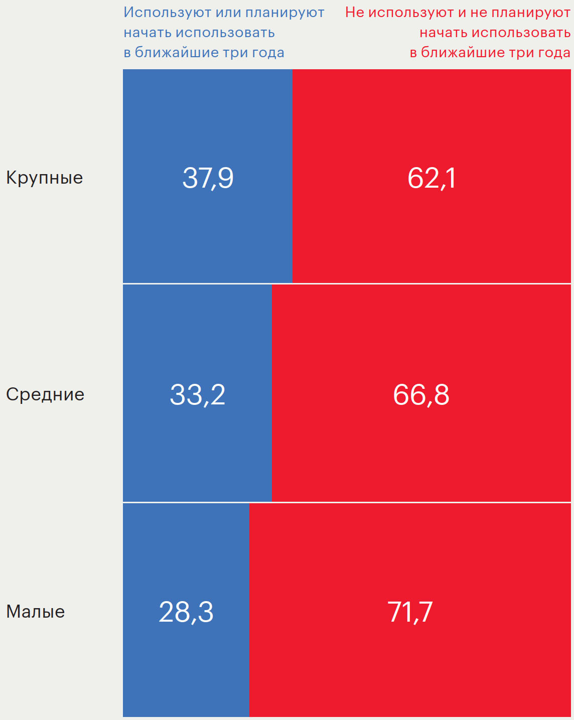 ** От числа организаций, использующих или планирующих использовать цифровые технологии.