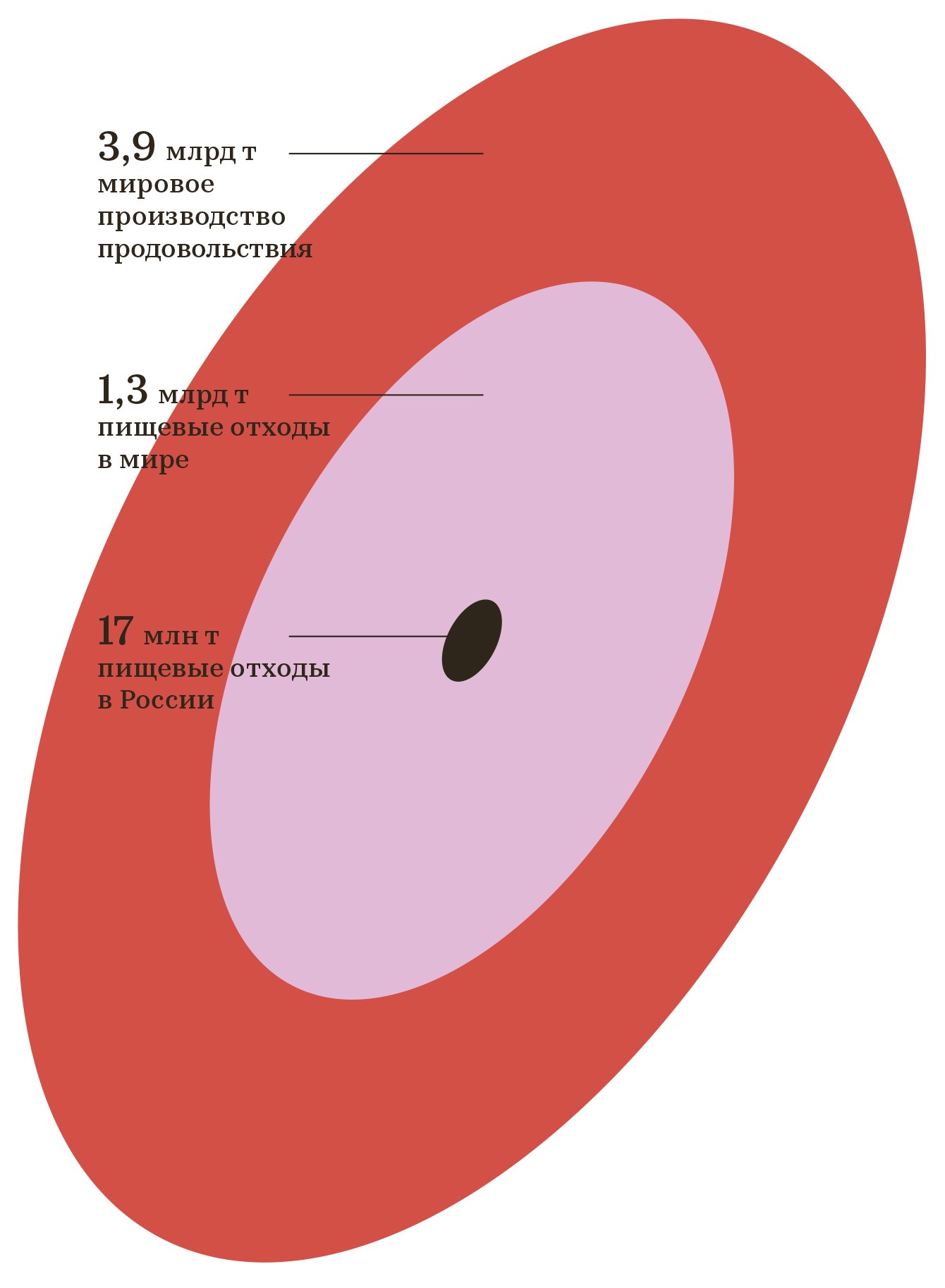 Ежегодно в России на помойку отправляется около 17 млн тонн продуктов, подсчитали эксперты Российской ассоциации электронных коммуникаций (РАЭК) и консалтинговой компании «ТИАР-Центр». Оказываясь на свалках, еда выделяет порядка 2,4 млн тонн метана — сильного парникового агента. Если бы эти 17 млн тонн еды можно было сохранить, ее бы хватило, чтобы кормить 30 млн человек в течение года. Выброшенная еда составляет около 28% всех твердых коммунальных отходов в стране, и обычные граждане вносят в эту цифру немалую лепту.