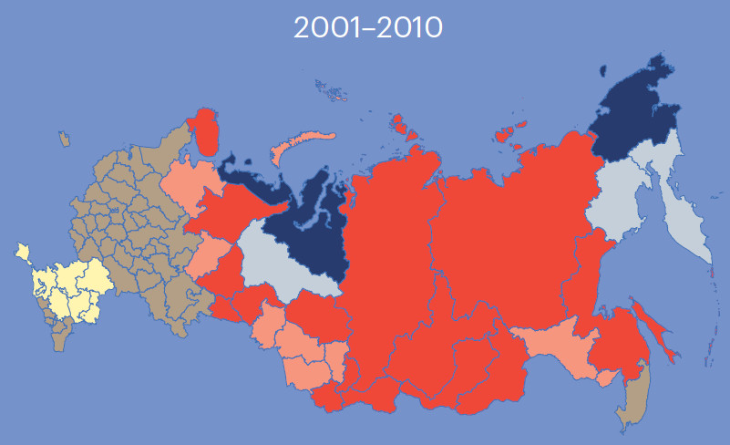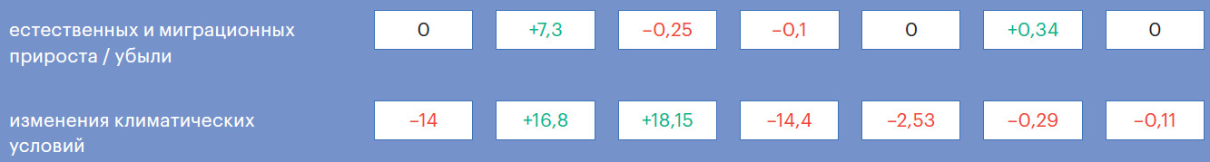 Авторы исследования утверждают: изменение природно-климатических условий в течение постсоветского периода затронуло десятки миллионов человек, особенно заметно в сторону улучшения — на Урале, юге Западной Сибири и Дальнего Востока (всего 19 регионов), в сторону ухудшения — на юге Европейской территории России и в Поволжье (всего 15 регионов). Масштабы климатических изменений заметно опережают сдвиги в расселении, но оба фактора работают в одном направлении — в сторону концентрации населения в районах с более благоприятными условиями, так что в период 2011–2020 гг. на две наиболее благоприятные зоны (2 и 3) стало приходиться почти 90% численности населения России.