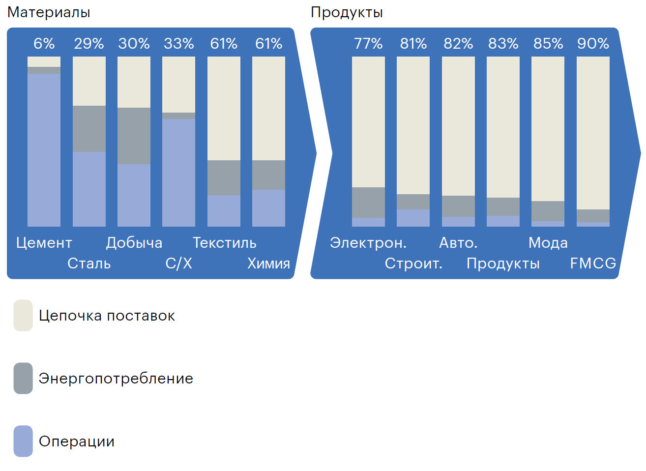 Среди тех, кто может уже сегодня начать работать со своими поставщиками, — пищевая промышленность и упаковка. Потребители уже сейчас требуют, чтобы в упаковке товаров было меньше пластика и больше перерабатываемых материалов. А вот цементной, сталелитейной, тяжелой и химической промышленностям, логистике точно придется попотеть: зависимость от ископаемого топлива тут очень высока. Да, это многомиллиардные инвестиции, но они все принесут огромный вклад в наше будущее и, главное, могут в итоге сыграть на руку самим компаниям, которые могут сформировать дополнительное конкурентное преимущество.