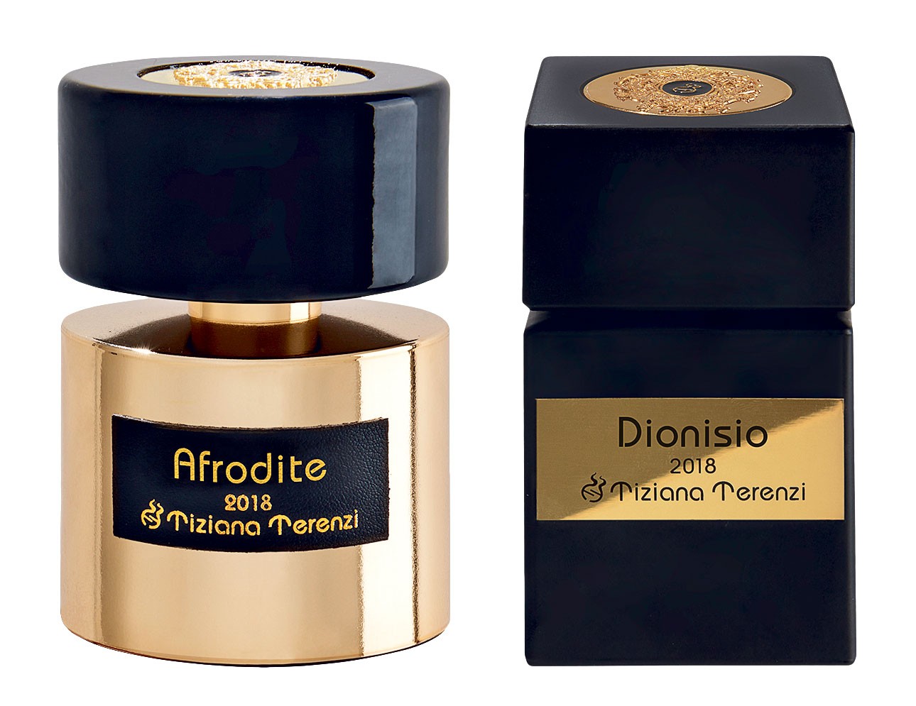 Итальянский бренд Tiziana Terenzi представляет две новинки этого года — парфюмерные экстракты Afrodite и Dionisio. Первая композиция родилась после путешествия на остров Крит, где среди высоких гор, на одном из бескрайних пляжей богиня Афродита появилась из морской пены. Присущее богине любви и красоты соблазнительное настроение президент и парфюмер марки Паоло Теренци передал при помощи яркого цветочно-ванильного коктейля с мощным древесным финалом. Второй аромат Dionisio навеян летней ночной прогулкой по Риму. Парфюмер увидел на улице Вечного города спектакль, посвященный дерзкому и своевольному божеству Дионису, который был способен опьянить и подарить человеку чувство полной свободы. Созданный аромат переливается загадочной серой амброй и таинственным мускусом, цветочным аккордом и в завершении взрывается пленительными нотами черного уда и мадагаскарской ванили.