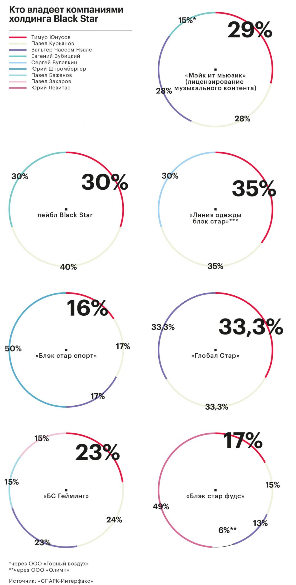 Тимати и Пашу владеют долями почти во всех юрлицах группы (см. инфографику), но в разном бизнесе у них есть разные партнеры.