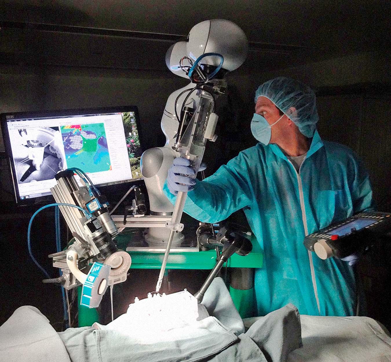 Одной из самых распространенных роботизированных хирургических систем сегодня является Dа Vinci, но ею управляет человек. Dа Vinci состоит из нескольких «рук» и консоли для хирурга, чтобы ими управлять. Хирург и его ассистенты также могут видеть реалистичное многократно увеличенное 3D-изображение оперируемого участка.