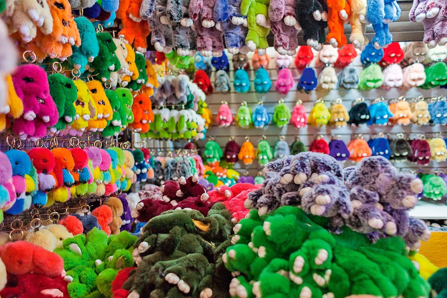 На некоторых рынках центрах Москвы среди одежды и аксессуаров есть целые ряды, полностью посвященные кроликам. Звери гроздьями свешиваются с вращающихся стоек (этот товар продавцы уже успели обработать отпаривателем), выглядывают из огромных клеенчатых баулов или плотными рядами лежат на демонстрационных стойках. Самый популярный размер кроликов — от 8 до 12 см, но есть и экземпляры объемом со средний рюкзак. Оптовая цена мелкого зверя варьируется от 98 до 110 руб. за штуку — при условии выкупа короба (это 700 кроликов), в рознице они стоят уже около 400 руб.
