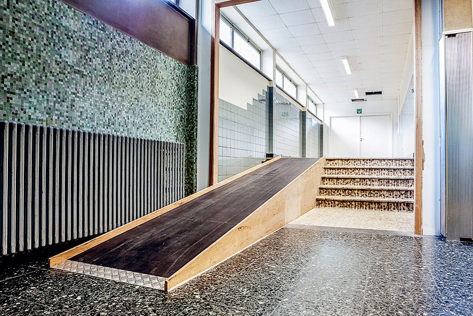 Преодоление перепадов высот даже при наличии пандусов — это неудобно и тяжело. Часто пандусы размещают так, что на них попадают снег, вода и сосульки, падающие с крыши здания. К тому же монолитные пологие съезды требуют регулярного обслуживания, особенно в сложных погодных условиях — и об этом часто забывают коммунальные службы. Бывает и так, что, счищая снег с тротуаров, заваливают и подходы к пандусу, и сам пандус. Наличие ступеней на входе в подъезд предполагает и перепады высот внутри здания на пути к лифту — и здесь сделать пандусы гораздо сложнее.