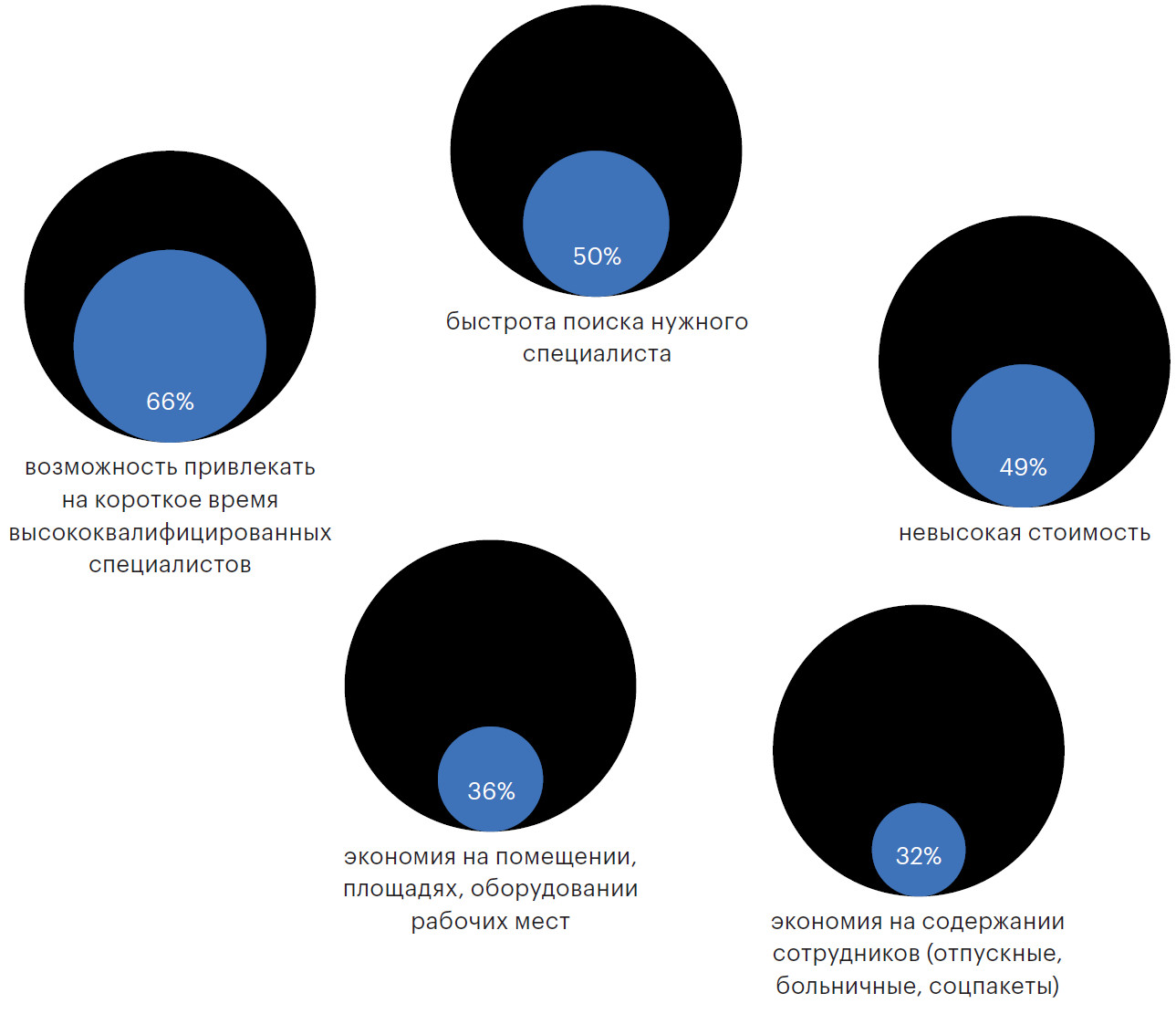 Работа с фрилансерами становится распространенной практикой в бизнесе. По результатам опроса PwC, в России 25% компаний планируют заместить фрилансерами до 30% работников. Госкомпании тоже становятся фриланс-френдли. Так, в 2019 году «Газпром нефть» запустила платформу «Профессионалы 4.0», на которой госкорпорации размещают задачи для внештатных специалистов.
