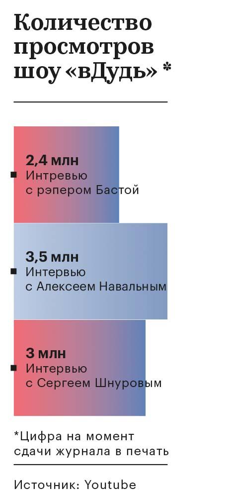 Взрыв интернет-популярности Дудь объясняет просто: он стал поставщиком контента, которого в YouTube не было и который по содержательности соответствует ведущим медиа. «Интервью — это обилие эмоций, фактов и всего остального. Раньше аудитория YouTube думала, что это максимально дежурный, ритуальный жанр. Поэтому для местных зрителей это как минимум необычно», — считает он.