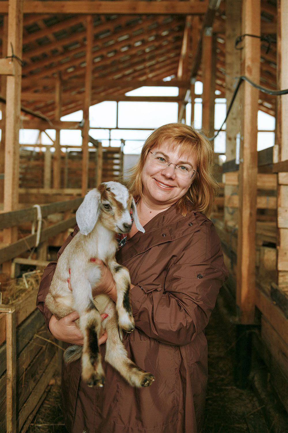 На участке стоит сама сыроварня, дом, где живет Мария с семьей, есть загон для коз и коров, картофельное поле, хлев, где подрастает молодняк, уходят вдаль парники. Крошечные двухнедельные козочки бодают тебя в руку, когда пытаешься их погладить, взрослые с любопытством и удивлением смотрят на гостей; коровы, как всегда, невозмутимо жуют сено. Урожай — помидоры и перцы, свежие и соленые в бочке огурцы — отправ ляю т в свои кафе. На хозяйстве, производстве и в магазине всего работает 27 человек. Большинство приезжает из города, но есть работники и из Новоселья, села в 20 минутах езды от Переславля, где находится сыроварня.