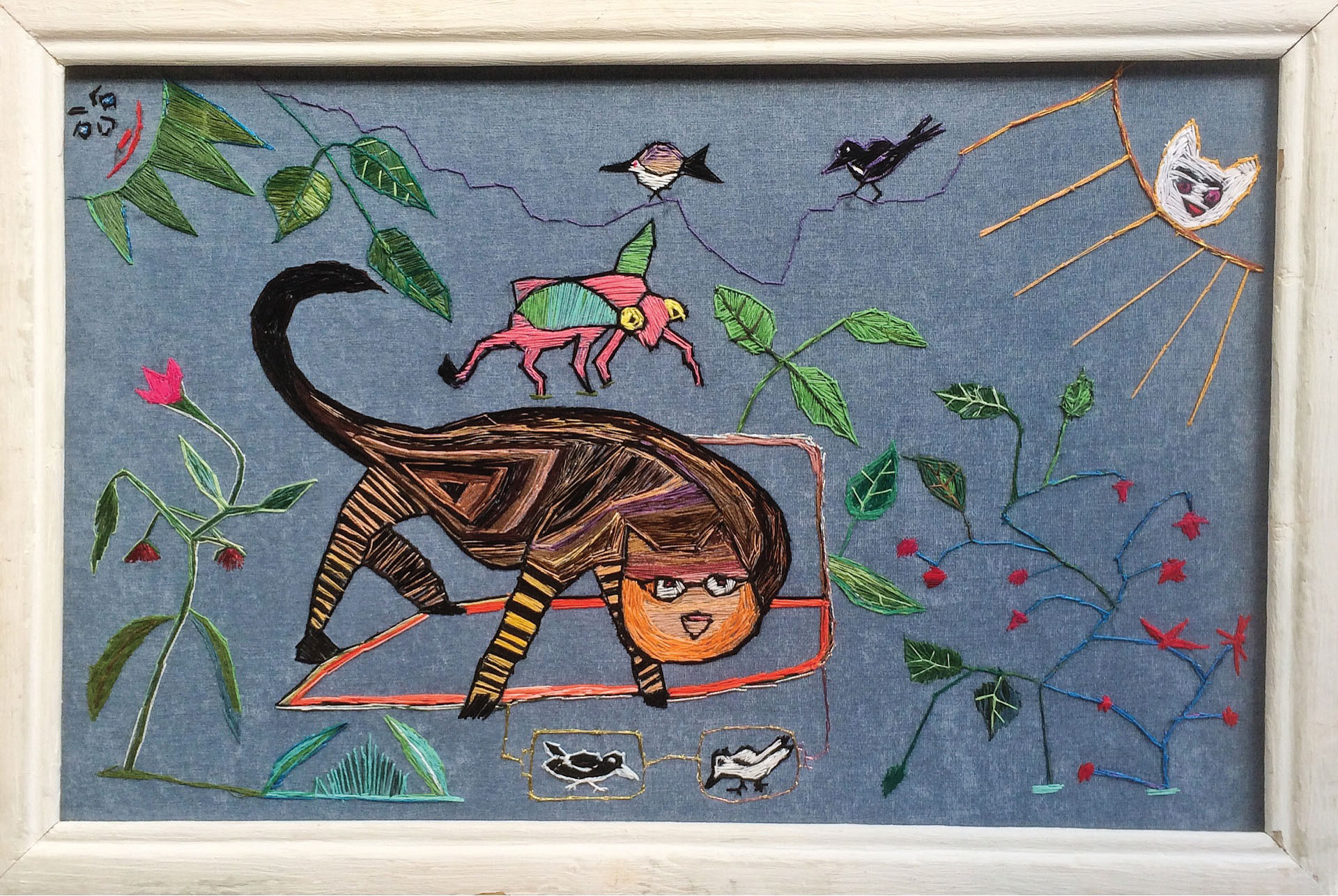 Юлия Алёшичева практически не отвечает на вопросы о своих работах — ну вот да, вышиваю потихоньку. Она может забыть лицо и имя человека, которого видела пять минут назад, но прекрасно помнит события многолетней давности и то, как ее в пять лет учили вышивать мама с бабушкой.