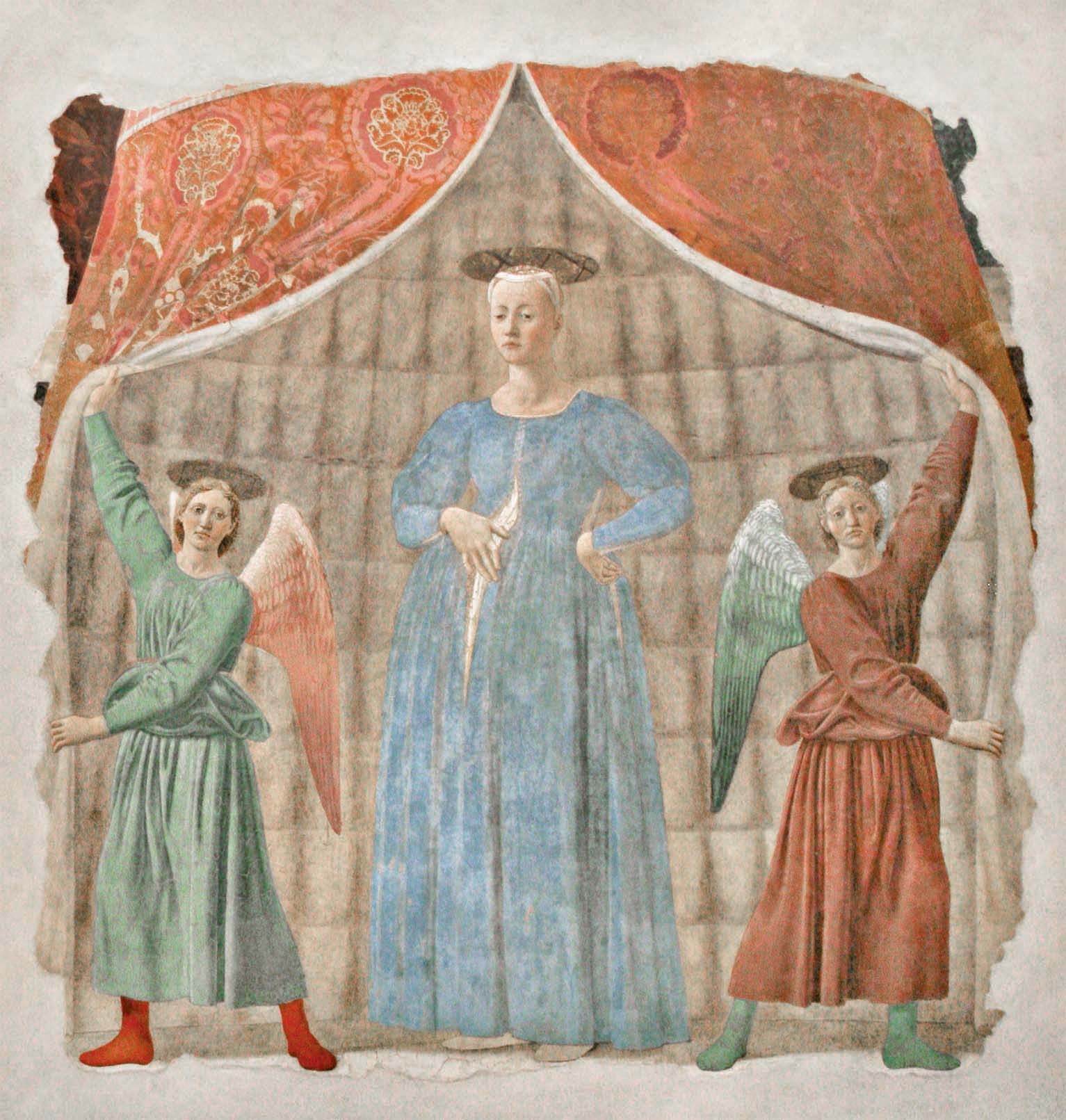 Вот прозрачное небо в алмазном свете, что я видела утром. А вот предзакатная синева на платье Мадонны. А здесь зелень леса — изумрудная — в рукаве. И все те же ковры цветов, по которым ступают грации, замершие в созерцании. И всё — цветение, и всё — любовь.