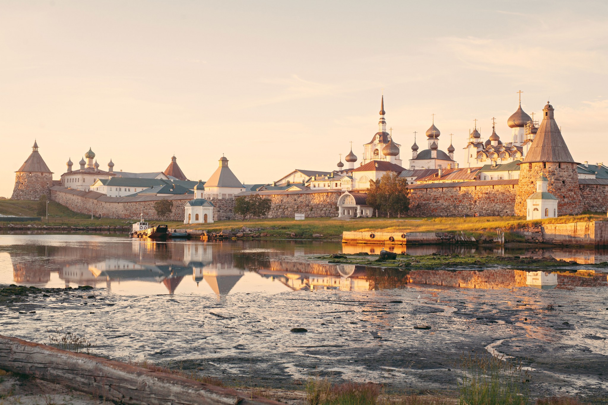 Вода, в которой отражается Спасо-Преображенский Cоловецкий монастырь, несет путешественников на кораблике парома. На Соловкаx все кратно одному — Монастырю, все вокруг него и соотносится с ним.