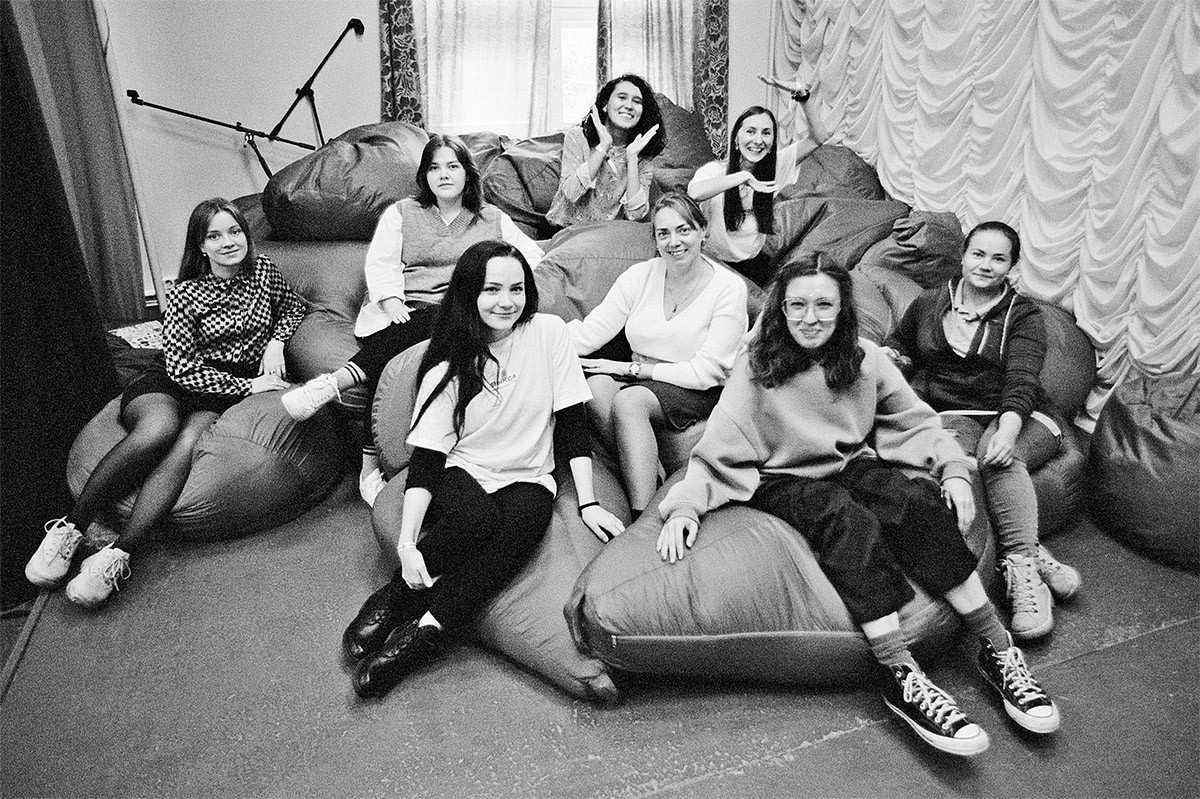 Я вела мастер-классы на фестивале «Арт-Овраг» в городе Выксе Нижегородской области осенью 2021 года. Вдруг на один из них слетелась как будто стайка старшеклассниц — таких веселых и творческих, что все занятие я не могла на них налюбоваться. Потом увидела, как они вместе с детьми делают костюмы из кальки, играют в шумовом оркестре, показывают математические фокусы. Десяти классники подходили к ним: «Можно с вами дружить?», — и вдруг краснели от изумления и смущения: «Как это, вы учителя? Вы на всамделишных учителей совсем не похожи!» И правда, придумывают, танцуют, хохочут, красками вымазались, как дети, с ног до головы. Помните, как в «Пеппи Длинныйчулок» школьный совет выводил на чистую воду заигравшуюся в салочки учительницу: «Она бегает с детьми из педагогических соображений? Нет! Получает от этого удовольствие!»