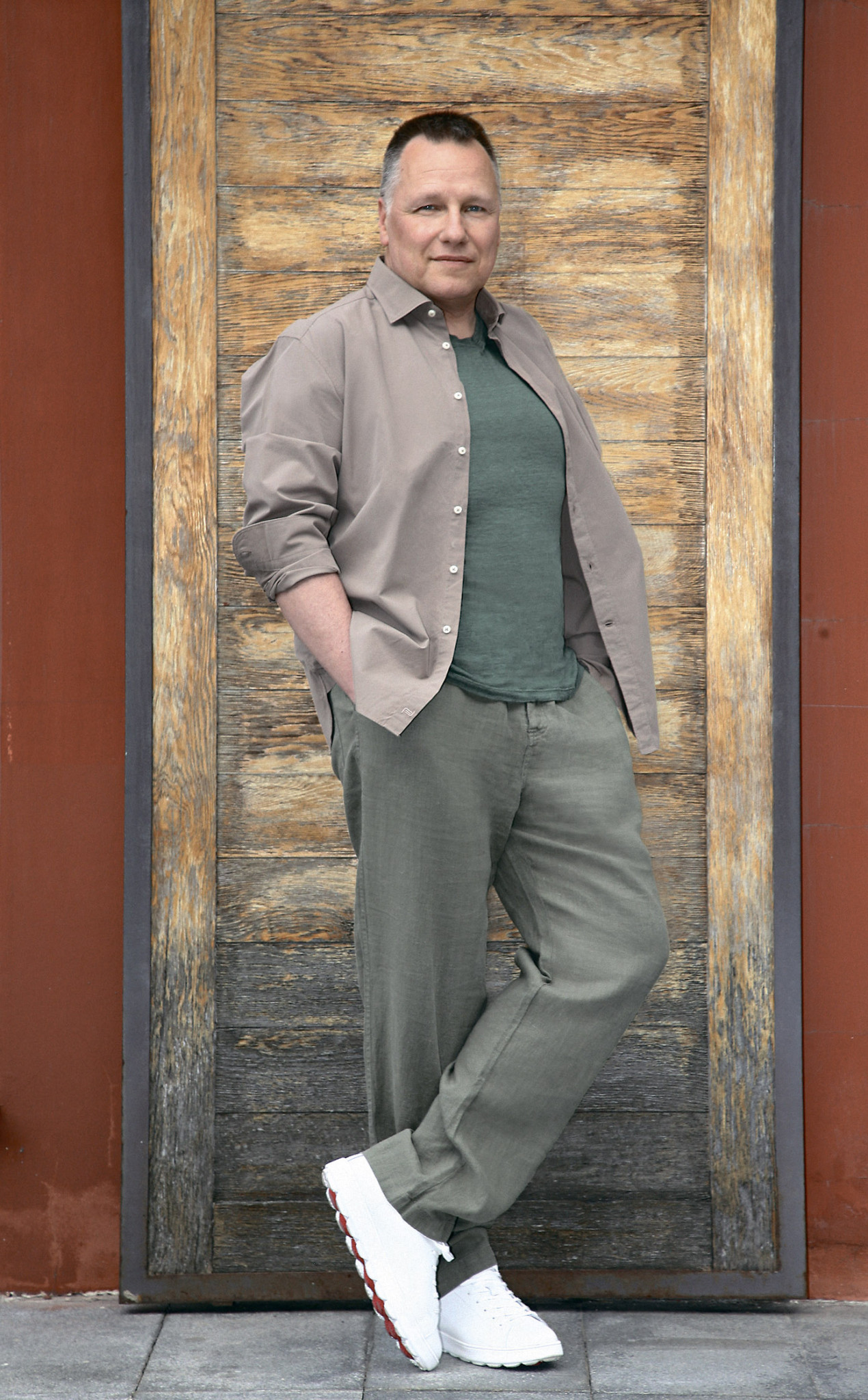 Стиль: Александр Челюбеев; Визаж: Ольга Попова; Фото: Алексей Трясков. Сорочка Camicissima, Футболка La Fabbrica Del Lino / X.o., Брюки Norveg / X.o., Сникеры Geox (список магазинов, в которых можно купить эти вещи, смотрите в рубрике «Гид Покупателя»).