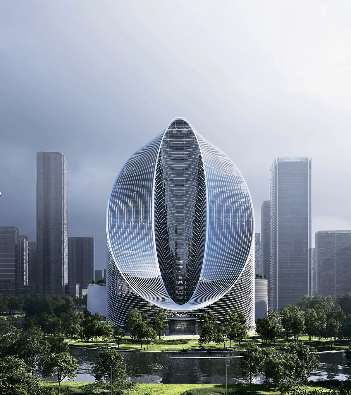 Команды исследователей и разработчиков китайского производителя смартфоно OPPO скоро разместятся в новом здании в Ханчжоу. Небоскреб O-Tower спроектирован нидерландской студией BIG в виде буквы «О», поверхности которой изогнуты в подражание математическому символу бесконечности. Помимо эстетической нагрузки такое решение еще и функционально, поскольку обеспечивает большую площадь для доступа света и воздуха. В центре окружности предусмотрен зеленый дворик, а снаружи – обширный парк общей площадью 10 тыс. кв. м, с озером. Доступ в парк (и на первый этаж небоскреба) будет открыт для публики.