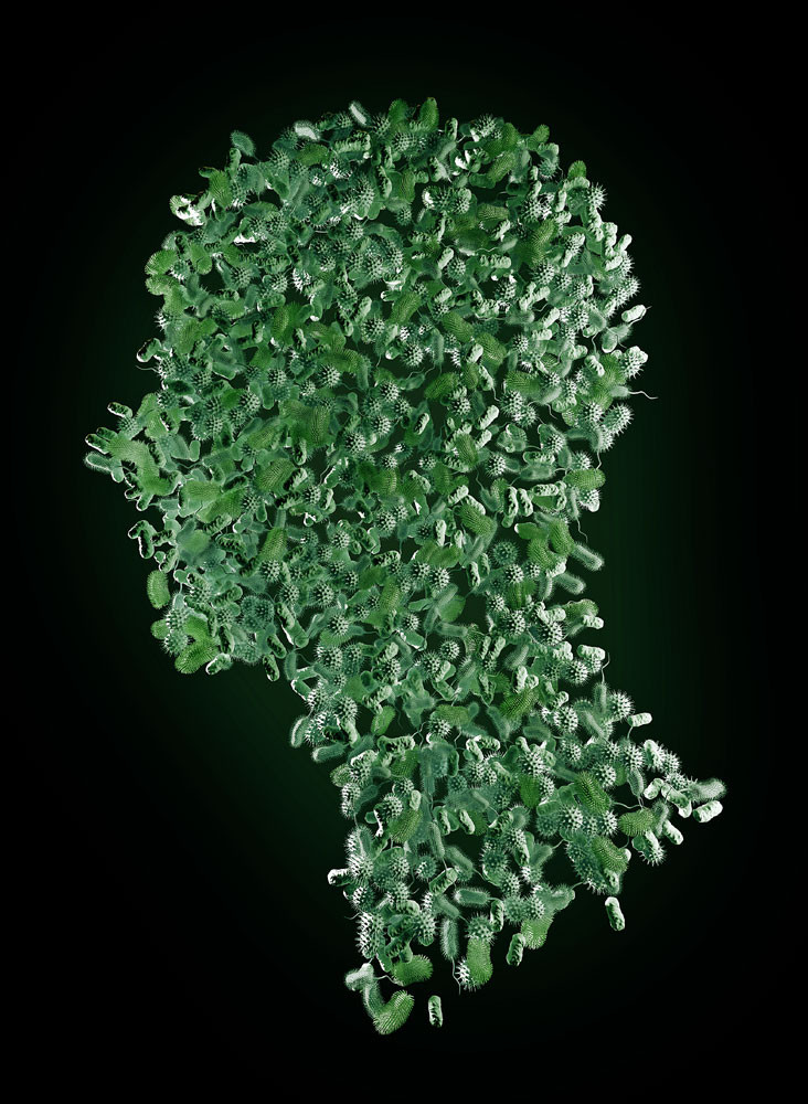 Крошечные существа живут у нас повсюду: на лбу, в подмышках, в носу и во рту, на пятках, половых органах и подушечках пальцев. Микробиолог Роб Найт и его коллеги из Колорадского университета в Боулдере выяснили, например, что бактерии, населяющие правую руку, отличаются от тех, что обитают на левой. Более того, на каждом пальце процветает особое микробное сообщество, непохожее на сообщества на других пальцах. Анализируя бактерий, живущих на компьютерной мыши, можно с вероятностью 90% выяснить, чья она.