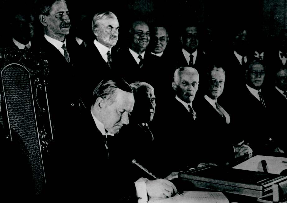 «Парижский договор об отказе от войны в качестве орудия национальной политики», также известный как пакт Бриана — Келлога, подписали представители 15 государств 27 августа 1928 года. Позже к договору присоединились почти все государства мира.