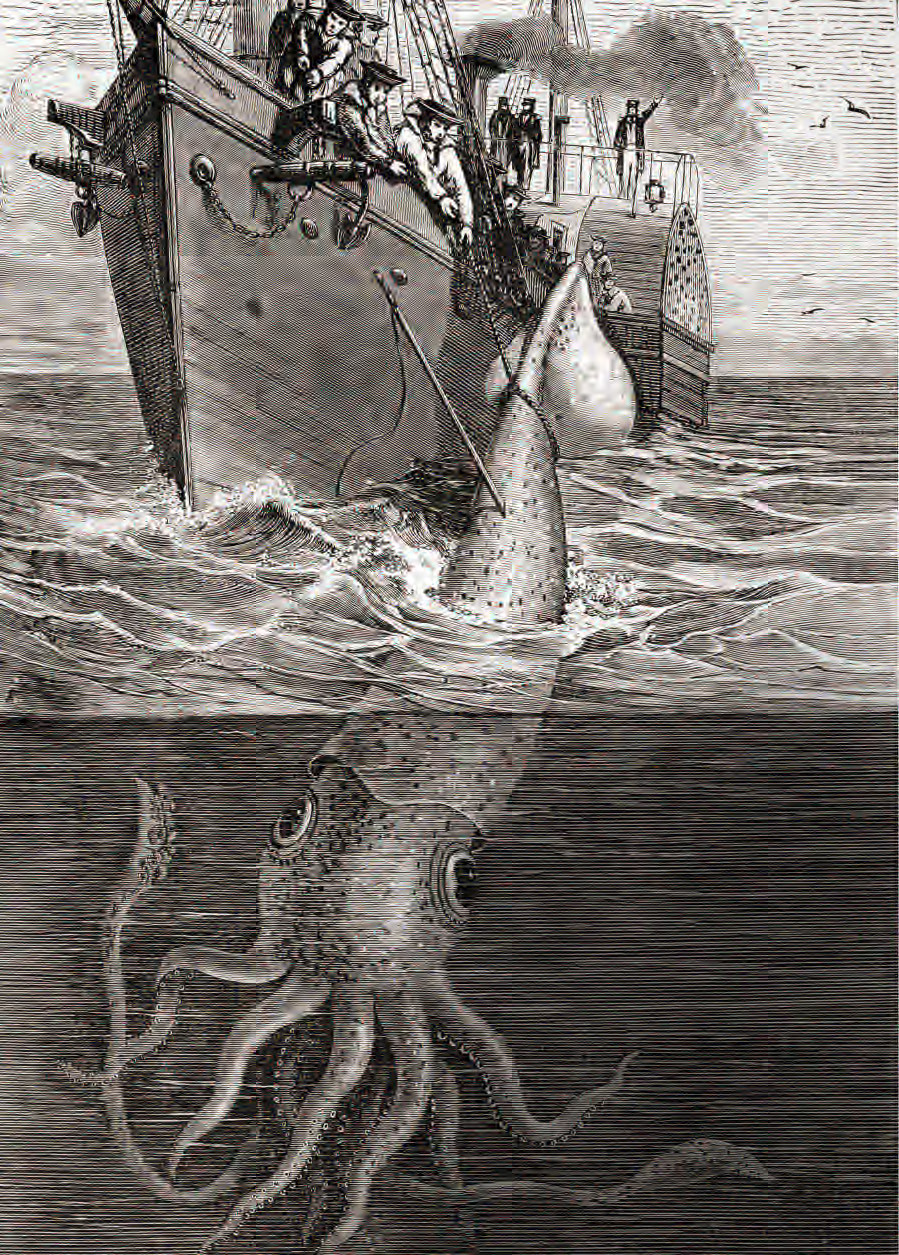 Дело было 30 ноября 1861 года. Французский паровой колесный корвет Alecton, направлявшийся в Гвиану, находился в сорока лье от Тенерифе – самого большого из Канарских островов. Вдруг вахтенный заорал: «Вижу огромную тушу в воде!» Взбудораженные моряки высыпали на палубу – и точно неподалеку от корабля виднелся какой-то непонятный предмет красноватого цвета. Азартные французы тут же вступили в горячий спор. Одни доказывали, что это опрокинутая шлюпка. Другие решили, что перед кораблем всего лишь гигантский пучок свалявшихся водорослей. Третьи настаивали, что это, наверное, труп лошади, упавшей с палубы какого-то судна. Четвертые предположили, что не лошадь, а всего лишь бочка. Но была и пятая версия.