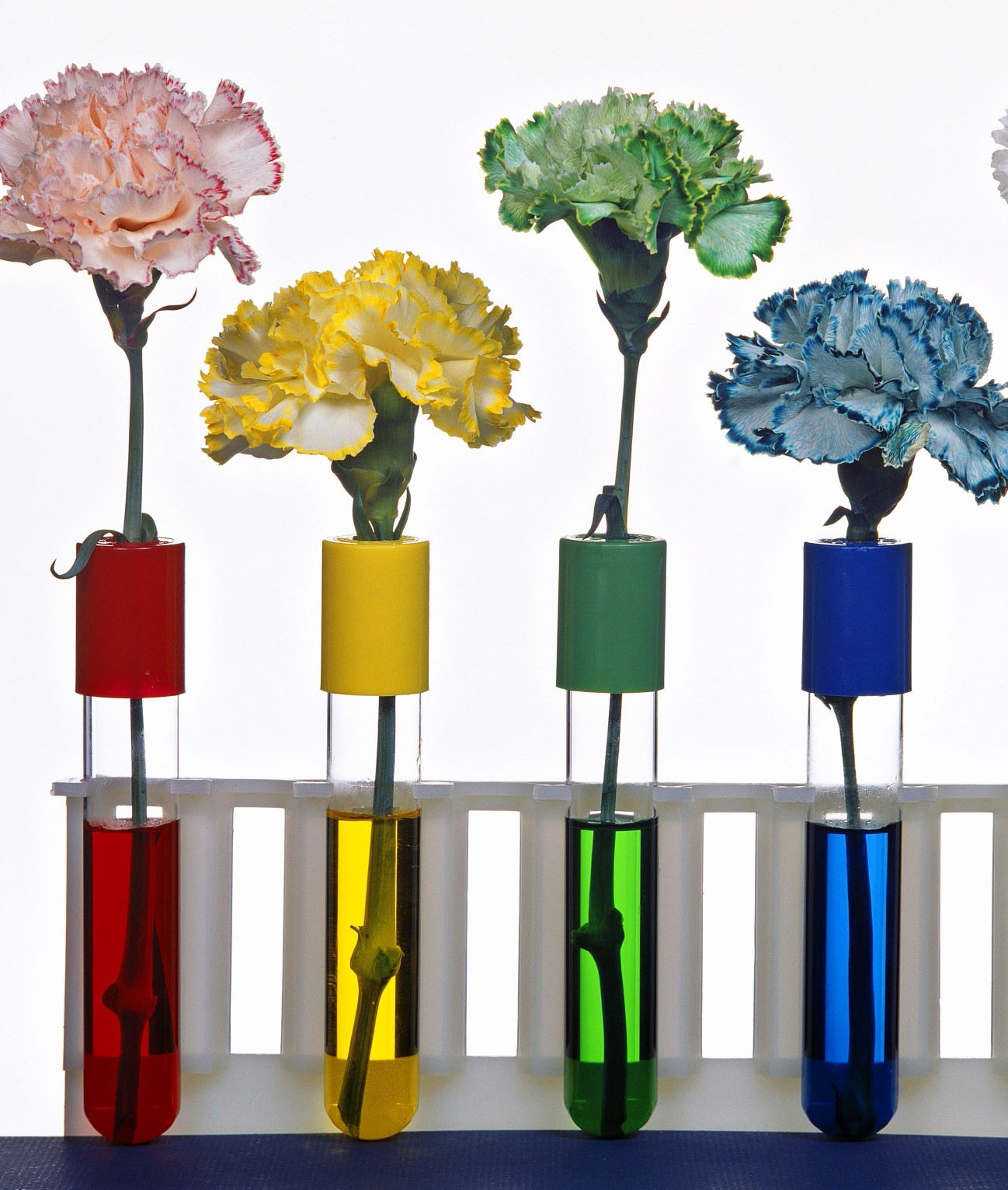 У растений нет сердца, прокачивающего жидкость, однако воду они поглощают не хуже насосов. Сосудистые трубочки ксилемы тянутся от корней до кроны, и влага с растворенными веществами поднимается по ним за счет капиллярных сил. Это позволяет получать цветы практически любых оттенков, включая такие, каких не существует в природе. Для наглядности мы взяли стебли сельдерея с их крупными, хорошо видимыми сосудами.