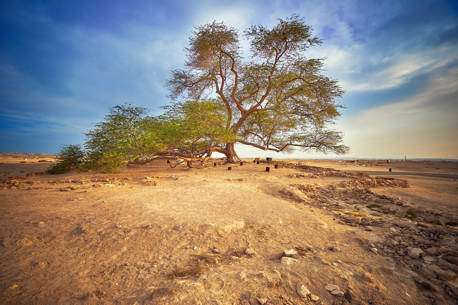 Дерево из рода прозопис (мимозка) семейства бобовых произрастает в центре Аравийской пустыни недалеко от холма Джебель-Духан. Рядом нет источников воды, поэтому непонятно, как дерево выживает, к тому же постоянно дает новые зеленые листья. Посещение дерева очень популярно у туристов.