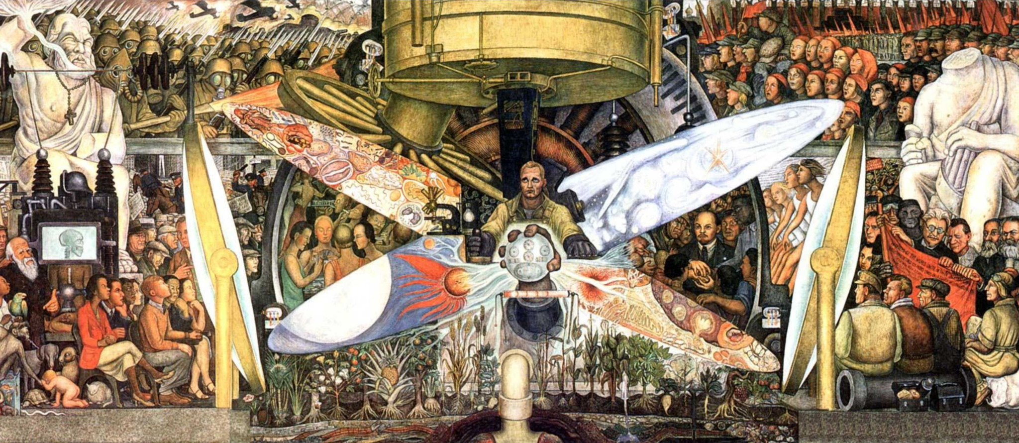 Рокфеллеры хотели видеть на стене своего центра оптимистичные размышления о том, к каким рубежам привел общество бурный научно-технический прогресс XX века и какие возможности он сулит. Но когда художник приступил к работе, его начали ругать с обеих сторон. Левым активистам не нравилось, что коммунист Ривера выполняет заказ за деньги капиталистов. Пресса негодовала, что «красная» пропаганда проникла в центр американского бизнеса. Вы получите настоящую пропаганду, решил художник, – и написал на фреске портрет Ленина. Шокированные Рокфеллеры потребовали убрать вождя революции. Ривера не согласился, и тогда фреску уничтожили, а от услуг художника отказались, выплатив ему причитавшуюся сумму.