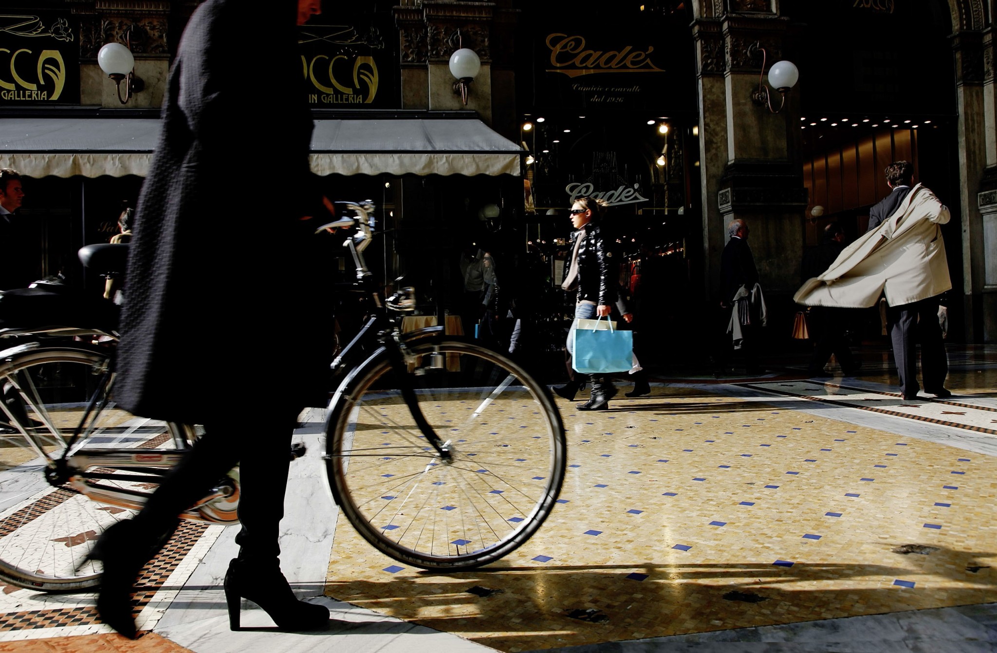 Милан будоражат наступающая весна и недели распродаж. На площади перед собором Дуомо фотографы снимают, как отражаются в лужах 135 готических шпилей и позолоченная статуя Мадонны, венчающая здание. Шопоголики всех стран стартуют в марафоне по «Золотому треугольнику» — району модных бутиков и шоурумов, обозначенному тремя условными вершинами: площади Дуомо и Сан-Бабила и двойная арка Порта-Нуова. Внутри несколько улиц с наибольшим количеством магазинов образуют квартал «Модный квадрат». С террасы на крыше Миланского собора Сабрина показывает главные ориентиры города:
