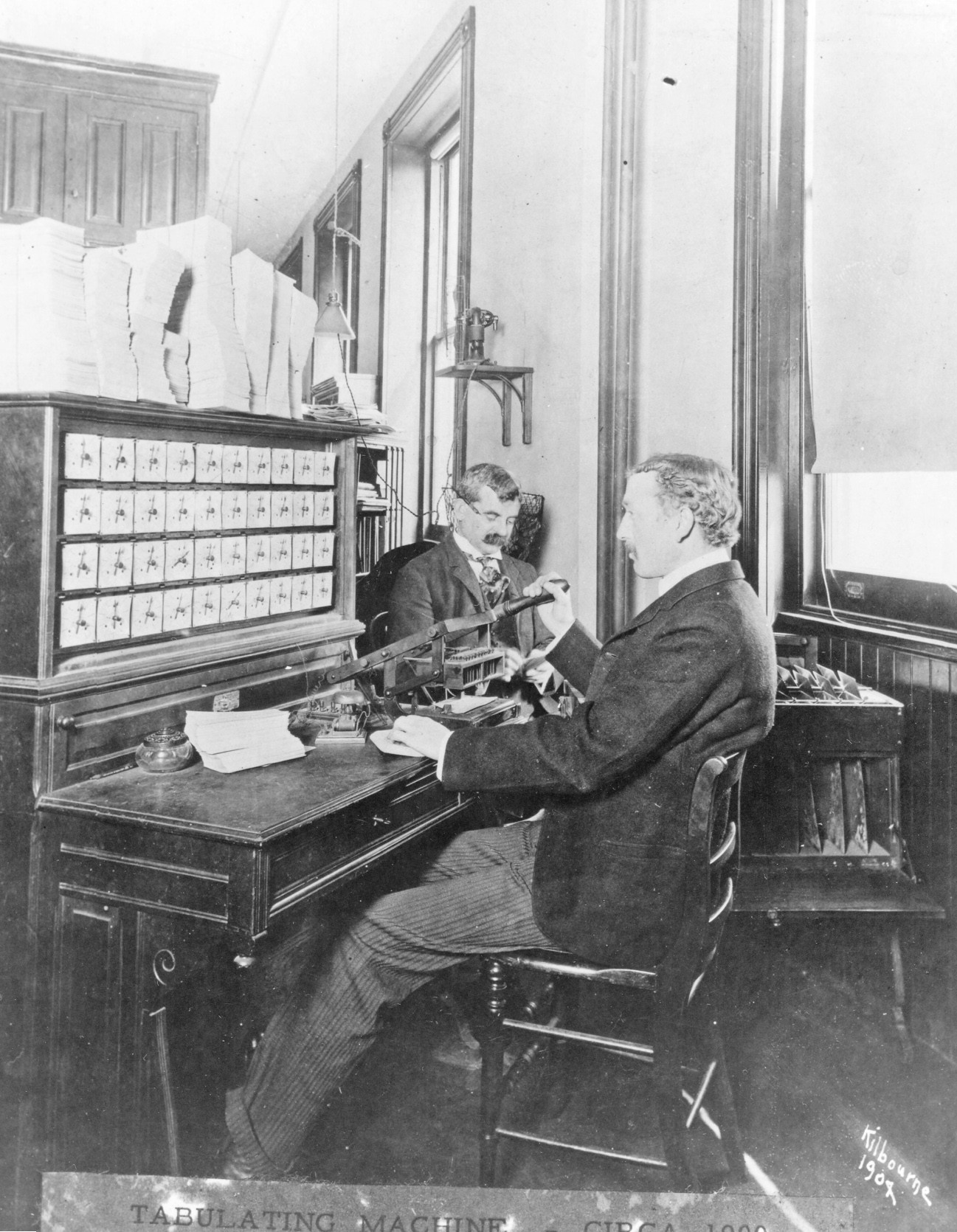 Еще отцы-основатели США записали в Конституции: нужно точно знать количество граждан, поскольку от этого зависит число мандатов от каждого штата в палате представителей конгресса и в коллегии выборщиков. С 1790 года переписи проводились каждые десять лет, но население увеличивалось так быстро (за одно столетие приросло в 16 раз!), что статистики попросту не успевали обрабатывать информацию. Помимо численности правительство интересовали точные данные по рождаемости, смертности, семейному положению и расовой принадлежности жителей страны. А также кто где работает, сколько в стране предприятий и какой специализации, сколько налоговых должников, посетителей библиотек, учащихся колледжей, академий и школ и еще многое другое.