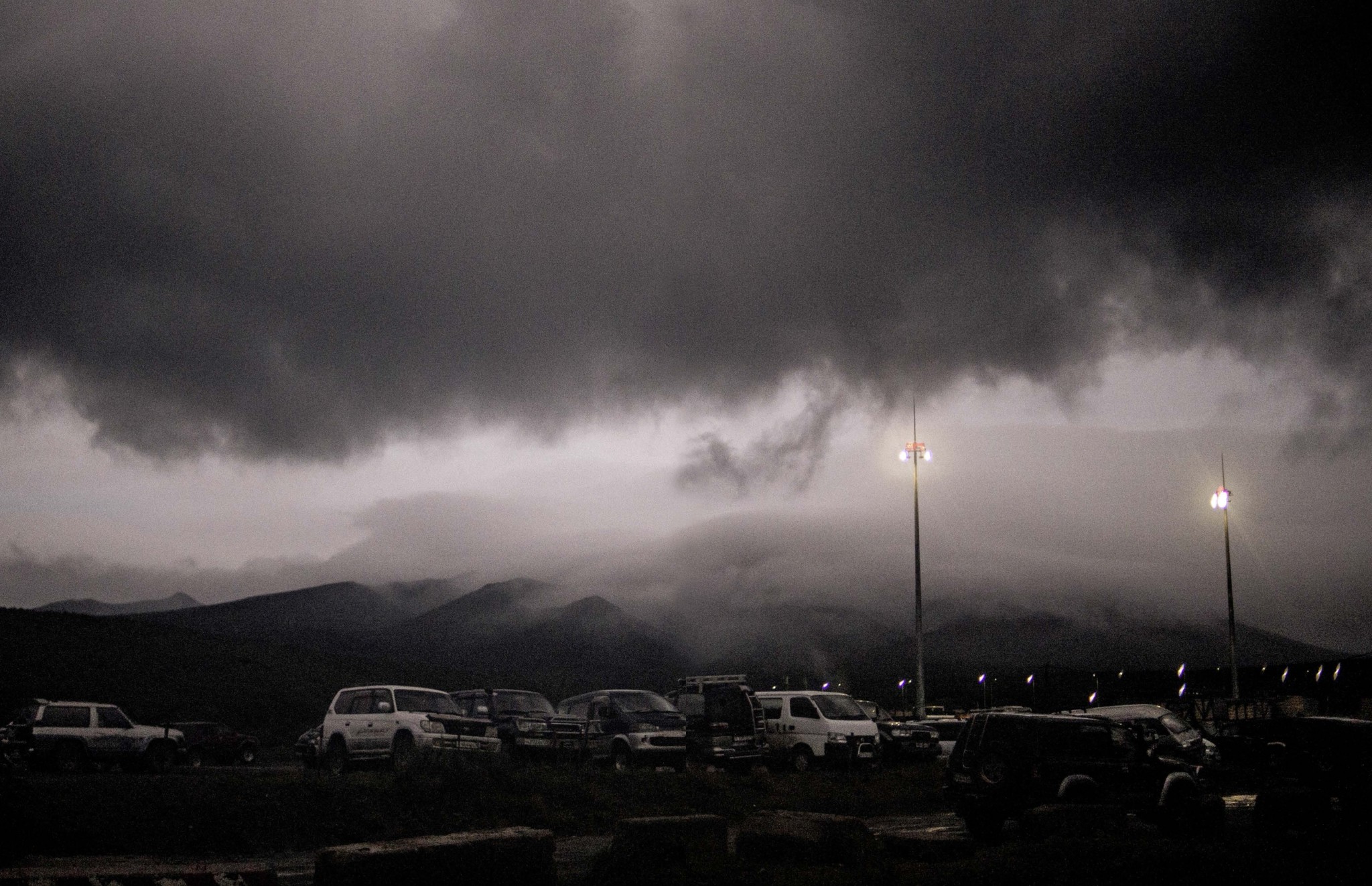 С территории военного аэродрома Буревестник группу журналистов, в числе которых я и фотограф Константин прибыли на остров Итуруп, вывозили по-солдатски сурово — под брезентовым пологом в кузове «Урала». Столь «радушный» прием объяснялся просто: на любом другом транспорте перемещаться по острову проблематично. Минут пятнадцать мы глотали пыль и, сидя на деревянных лавках, утрамбовывали внутренности на каждой кочке разбитой грунтовой дороги, пока грузовик не выехал на океанский берег с черным вулканическим песком, разглаженным отливом.