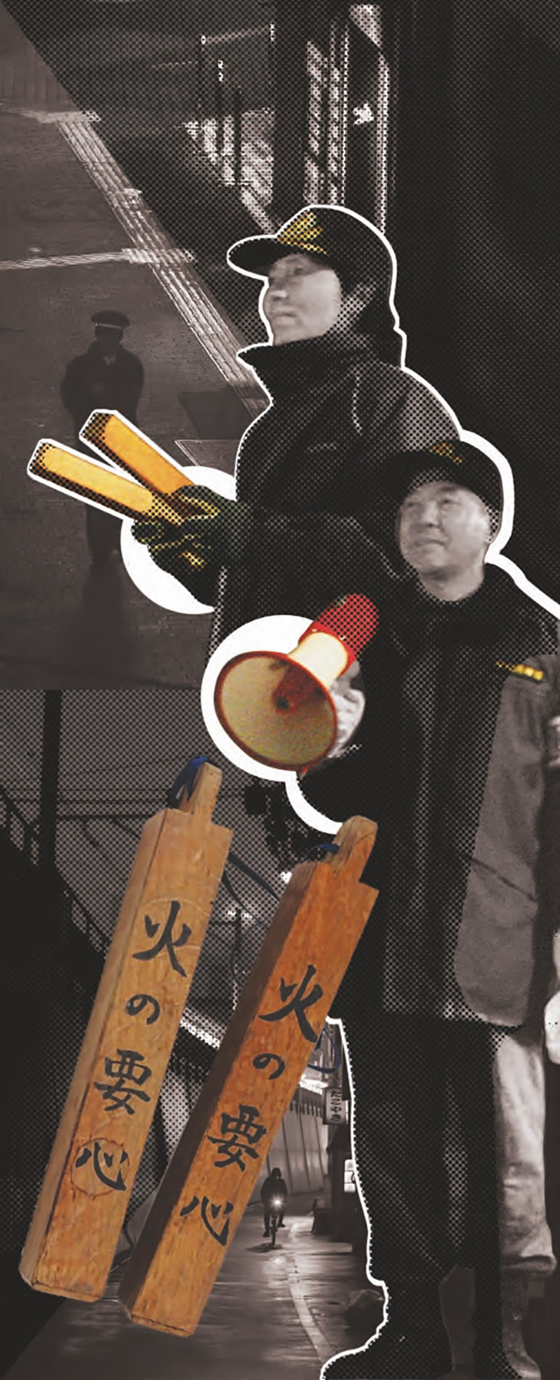 Никто точно не знает, когда появилась в Японии профессия ночного сторожа – якэя, или, как его еще называют, емавари. Одни считают, что в начале XVII века, когда верховный правитель сегун Токугава Иэясу боролся с феодалами – дайме. Другие относят это еще лет на 50–100 раньше. Интересно иное. На первый взгляд занятие у якэя не ахти какое трудное. Достаточно повесить на шею длинный шнурок с прикрепленными к концам на манер детских варежек хесиги – палочками из мореного дуба, и после этого гуляй себе по улицам, постукивай да смотри, нет ли где воров или пожара.