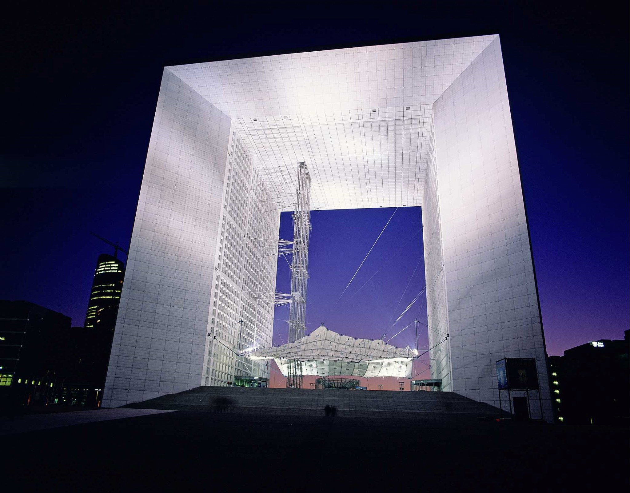 Большую арку, построенную в виде трехмерной проекции гиперкуба со стороной примерно в 110 м, можно считать окном в современный деловой Париж. Она продолжает историческую ось по линии Лувр — площадь Согласия — Триумфальная арка. Монумент, призванный воплощать идеалы братства и гуманизма, был открыт в 1989 году, к 200-летию Французской революции. В проеме находится гигантское «облако», крепящееся к основному корпусу стальными тросами.