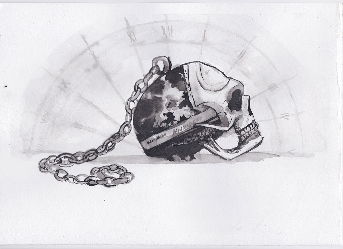 Например, фигуру Смерти с серпом и песочными часами можно обнаружить слева от астрономического циферблата на Пражских курантах, установленных на Староместской площади в 1490 году, а также на многих европейских башенных часах Средневековья. Там, где было слишком сложно устанавливать статую, помещали гравированное изображение скелета с косой – иначе в XV веке было непонятно, зачем вообще человеку нужны персональные часы: на электричку никто не спешил, а о бренности бытия думали много. Еще более доступным развлечением было писать прямо на циферблатах что-то жизнеутверждающее, естественно, на латыни. В идеале фраза должна была содержать ровно 12 букв, чтобы полностью уложиться в часовую разметку. Например, большой популярностью пользовался девиз Festina lente – «спеши медленно» или Hora Fugit, Ora – «время уходит, молись». А вот в хрестоматийной фразе Memento mori («помни о смерти») всего 11 букв, что, впрочем, не мешало ею также украшать резные корпуса и циферблаты. В конце концов, именно Memento mori стал называться впоследствии весь жанр макабрических часов.