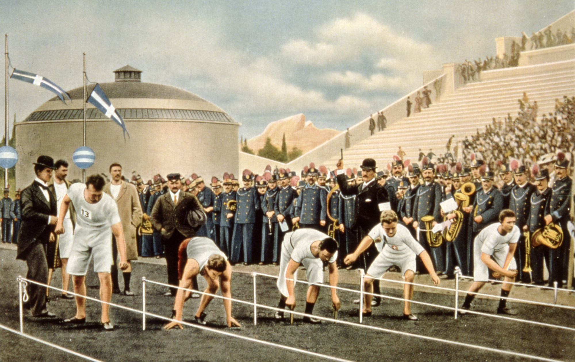 Первая современная Олимпиада состоялась в апреле 1896 года по инициативе французского общественного деятеля Пьера де Фреди, барона де Кубертена. По его замыслу, это было возрождение античных спортивных состязаний, на которые к святилищу Зевса в Олимпии съезжались атлеты со всей Эллады. Поэтому Олимпийские игры 1896 года прошли на «исторической родине», в Греции. Афины, Греция.
