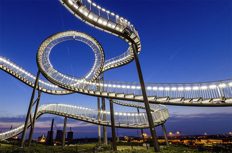 Похожая на американские горки конструкция — на самом деле произведение искусства из оцинкованной стали. Его воздвигли в 2011 году на куче отходов цинкового завода. Лестница-скульптура состоит из 349 решеток-ступенек. Общая длина конструкции — 220 метров, из них 20 приходится на мертвую петлю, «покорить» которую мешает гравитация. Полное название скульптуры: «Тигр и черепаха — Волшебная гора». Авторы закладывали в концепцию диалектику скорости и неподвижности, противопоставляя «логику вечного роста абсурдно противоречивой структуре, не поддающейся однозначной интерпретации».