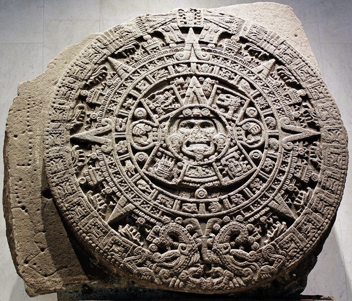 Камень Солнца – резная базальтовая плита диаметром в два человеческих роста и весом около 24 тонн. Испанские конкистадоры, христианские завоеватели Мезоамерики, когда-то зарыли его в центре ацтекской столицы Теночтитлана (современный Мехико). У ацтеков одновременно работало два календаря. По первому, 365-дневному, солнечному, отслеживали сельскохозяйственные сезоны. Он состоял из 18 месяцев, в каждом по 20 дней, а в конце года прибавлялись еще пять, считавшихся несчастливыми. Второй календарный цикл, ритуальный, был связан с фазами Луны, состоял из 260 дней и использовался для предсказаний. Дни в последовательности носили названия существ и явлений – крокодил, ветер, тростник и т.д. Каждому присваивался и порядковый номер. За 260 дней все комбинации названий и чисел исчерпывались, и цикл начинался снова, со дня «один Крокодил». Каждые 52 года начало солнечного и ритуального годовых циклов совпадало, это событие называлось «связывание лет», ацтеки отмечали его с размахом. Календарям были посвящены специальные кодексы, где перечислялись все 260 дней ритуального цикла. Отслеживали и толковали их почитаемые специалисты.
