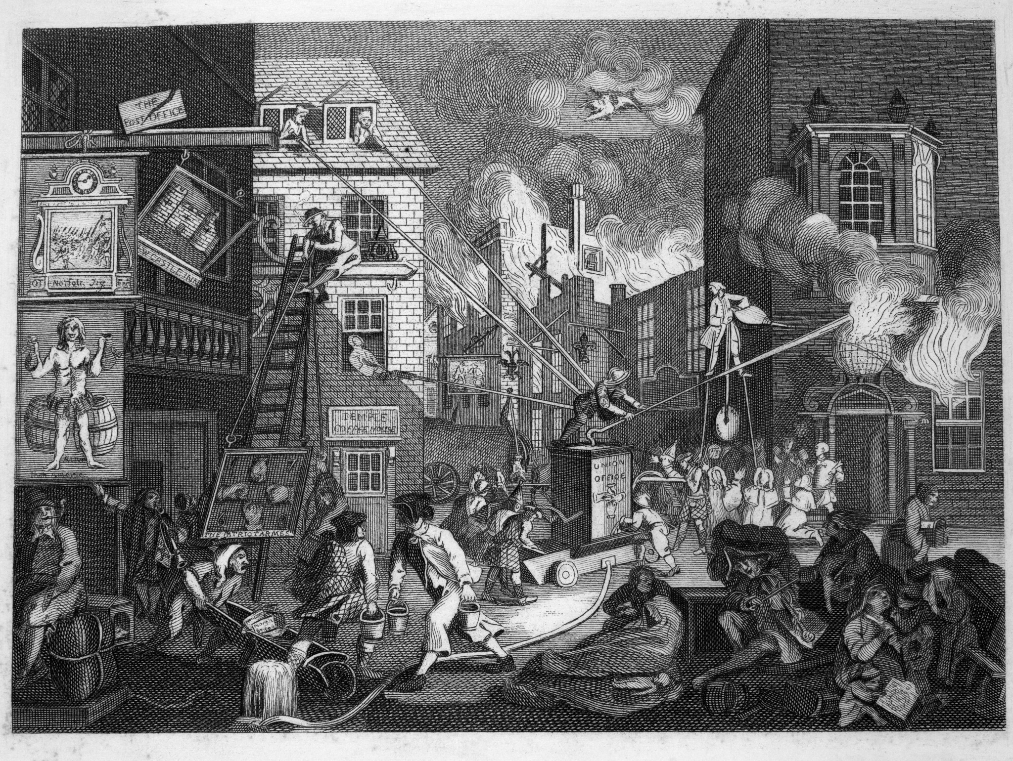 Помимо карикатур художник создавал более сложные по композиции сатирические гравюры. Пожалуй, наиболее известная из них — «Времена». Она состоит из двух листов (здесь воспроизведен первый) и датируется 1762 годом. Композиция вроде бы производит впечатление хаотичной фантасмагории, но на самом деле каждая ее деталь исполнена смысла. Правда, добраться до него можно, не иначе как погрузившись в исторический контекст.