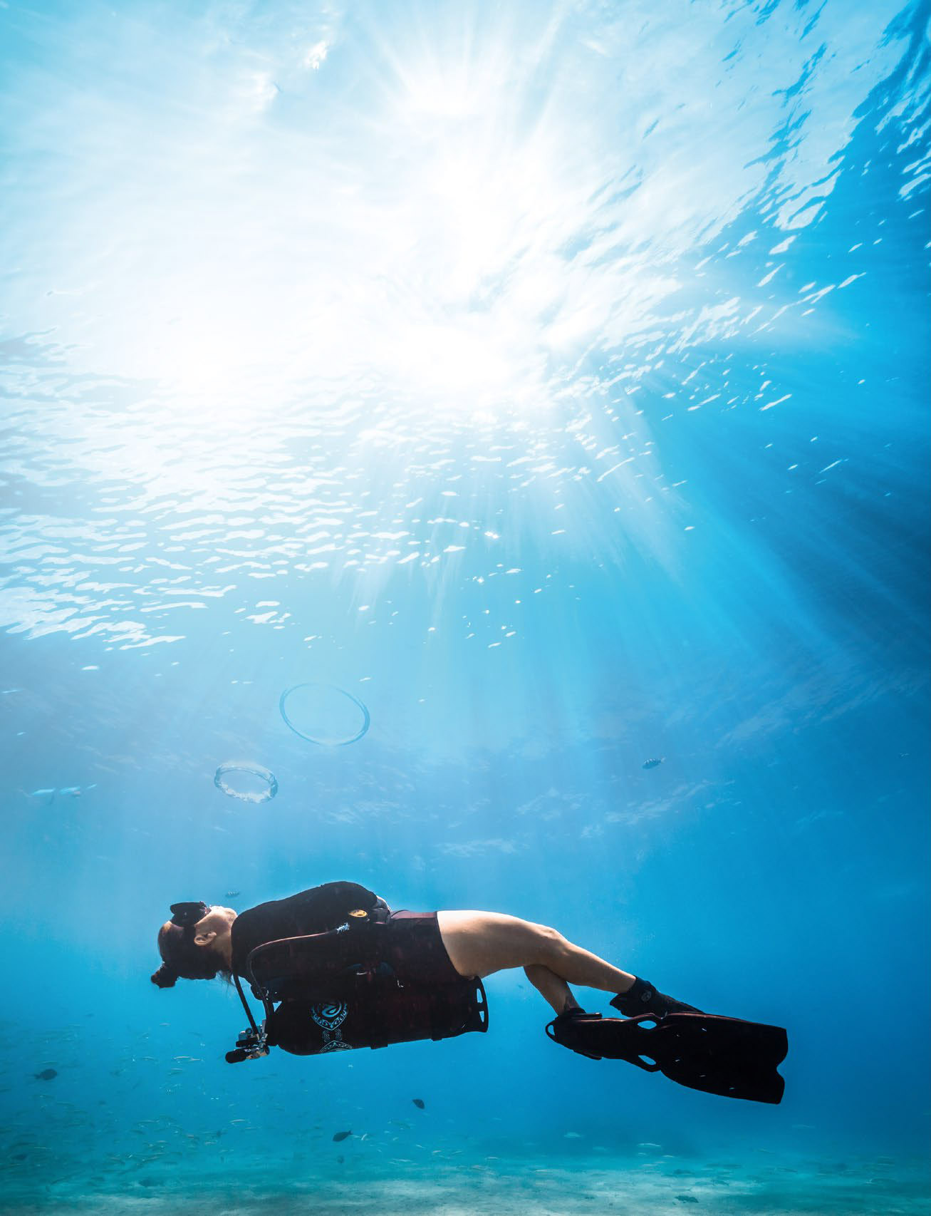 Решить эту проблему помогли компенсаторы плавучести, но обратной стороной медали стали тяжеленные грузовые пояса или карманы со свинцовыми чушками. Кроме того, наличие объемного сжимаемого воздушного «пузыря» приводит к тому, что даже небольшое изменение глубины на 1,5–2 м значительно влияет на плавучесть. С компенсатором зона устойчивой нейтральной плавучести составляет около двух метров, и в ней опытный дайвер может маневрировать с помощью легких, не притрагиваясь к инфлятору. Как только он выйдет за пределы этой зоны, безопасно нивелировать «эффект пузыря» с помощью дыхания уже не получится, и придется стравливать или добавлять воздух в компенсатор. Чем меньше объем компенсатора, тем меньше проявляется этот эффект и тем шире зона устойчивой нейтральной плавучести.