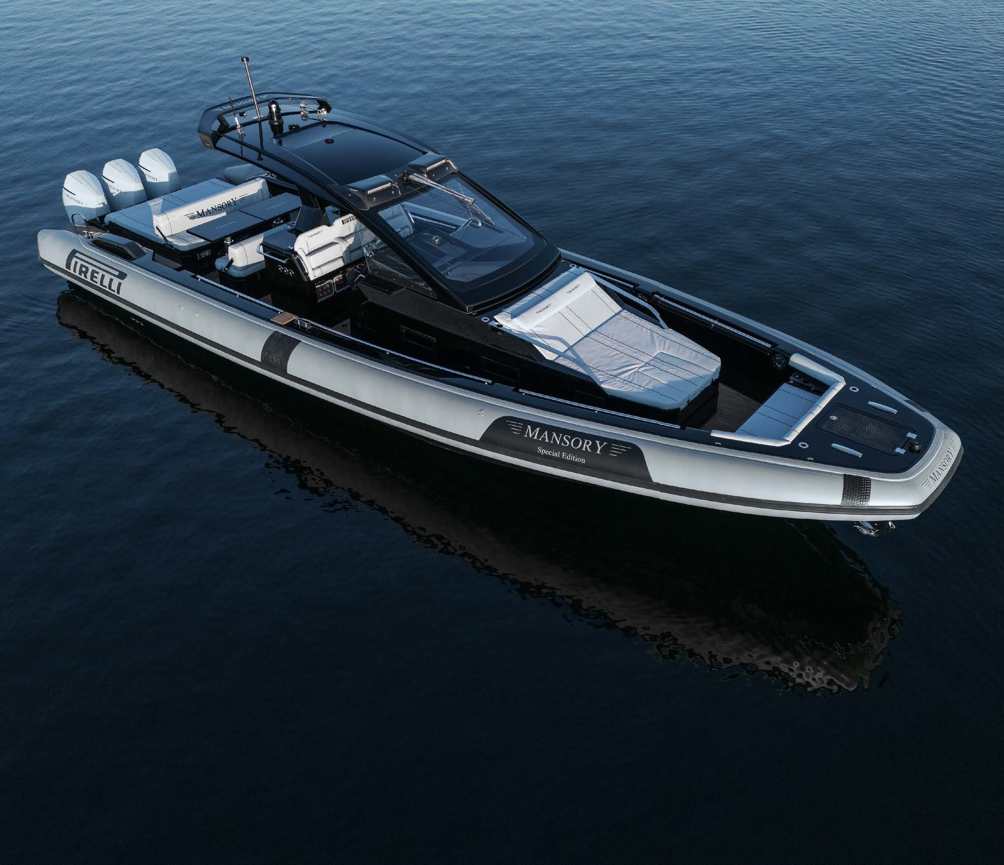 Сотрудничество компаний, работающих в разных «стихиях», в частности на суше и воде, неуклонно крепнет. На слуху примеры взаимодействия AMG и Cigarette, Brabus и Axopar, лодочные проекты Bugatti и Lamborghini. Теперь к водной тематике подключилось известное своими экстравагантными решениями автомобильное тюнинг-ателье Mansory (Германия), преобразив RIB итальянской компании Sacs Tecnorib. Речь о модели Pirelli 42 Special Edition, премьера которой планировалась в этом году на выставке в Дубае, однако была отменена. Взамен показали масштабную модель и видео с первых тестов. Несмотря на сей факт, хочу познакомить вас с этой нерядовой лодкой.