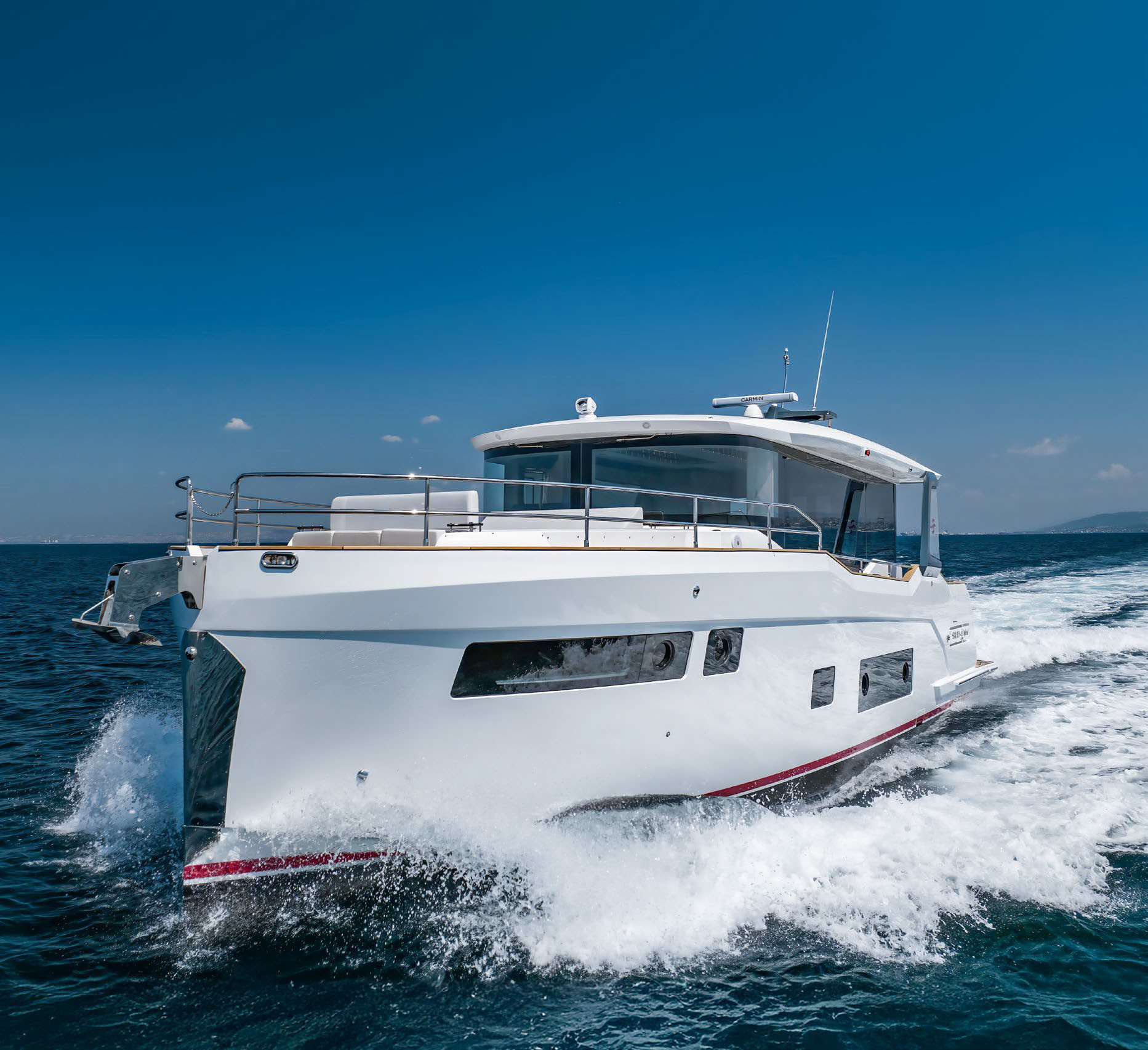 Турецкая верфь Sirena входит в состав крупного промышленного холдинга, что позволяет ей чувствовать себя на рынке спокойно и уверенно. В частности, не предпринимать быстрых и не очень хорошо обдуманных решений в отношении экологичности своего флота. На Cannes Yachting Festival мы увидели первую модель верфи, оснащенную гибридной моторной установкой. И она отличается от других, доступных сегодня в аналогичных размерах.
