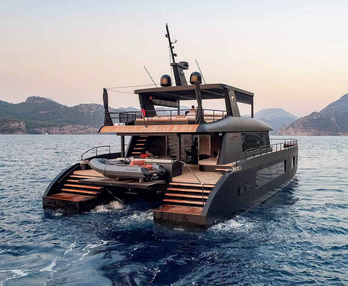 Прогулочные суда катамаранного типа всегда пользовались определенным спросом хотя бы потому, что такие лодки под парусом идут без крена и располагают большой площадью главной палубы. Но в последнее время стало появляться все больше моторных катамаранов, которые привлекают именно вторым обстоятельством — площадью палуб, дающей гораздо больше возможностей в отношении компоновки и комфорта в сравнении с однокорпусной яхтой. Одно из таких судов, показанных сначала на Cannes Yachting Festival 2022, в потом и на выставке в Монако, — катамаран VisionF 80 Black Edition.