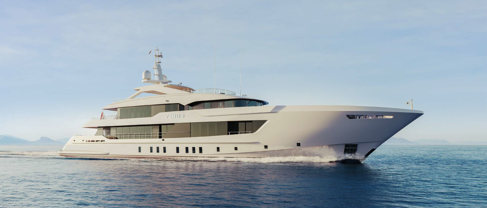 Корпус Venus заложили в конце 2022 года на предприятии Talsma в провинции Фрисландия (север Нидерландов). Talsma — давний партнер Heesen: здесь строятся все стальные корпуса будущих лодок этой верфи, в то время как сама верфь в Оссе занята производством алюминиевых. Heesen давно практикует строительство яхт без конкретного заказчика (on speculation). Это существенно экономит средства и время и предприятию, и его клиентам. Конечно, такой способ приобретения яхт не позволяет особенно сильно менять исходный проект, и тут многое зависит от производителя, его смелости и понимания рынка, предпочтений заказчиков и даже умения заглянуть в будущее. Например, для проекта, по которому создавалась героиня нашего рассказа, инженеры из студии Omega Architects и дизайнеры Heesen придумали надстройку с уступом в виде острого «зуба» на свесе у поста управления. На Heesen его называют «зуб акулы». А из остекления столовой на главной палубе и салона на верхней убрали средники, чтобы обеспечить панорамный обзор. Такое решение дает возможность видеть море практически отовсюду, находясь внутри, а это, как мы знаем, один из наиболее популярных сегодня запросов будущих судовладельцев. Плюсом для подобных проектов является и способность верфи вносить изменения в первоначальную задумку. Например, для предшественницы Venus, яхты Iris Blue того же проекта, переданной владельцу в начале 2024 года, вертикальное остекление надстройки заменили на огромные панорамные окна. И Venus унаследовала эту черту: так