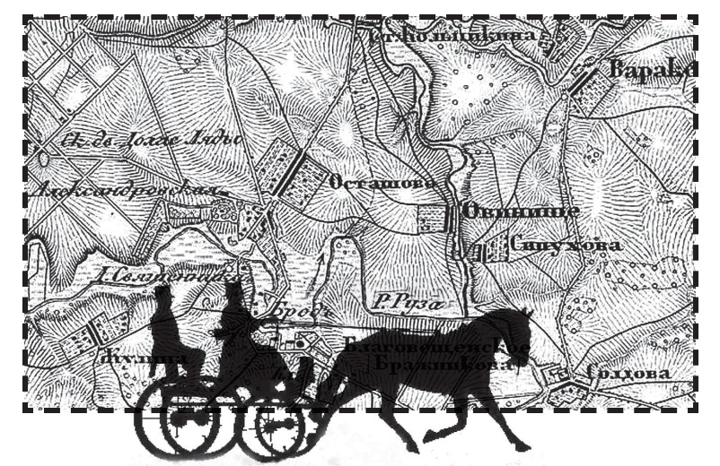 Об этой поездке Пушкин подробно написал жене. Из писем мы знаем, что на пути из Петербурга, в Торжке, он повернул на Старицу; далее со столбовой уездной дороги свернул и проселками добрался до имения Вульфов – Павловское, где гостил недолго. Из Павловского едет в Старицу; оттуда – почтовым трактом через Лотошино до Яропольца.