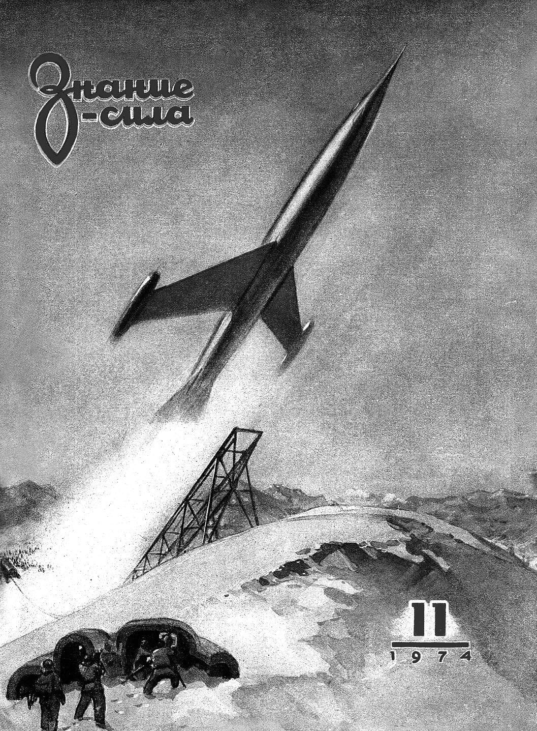 Октябрь 1954 года. В киосках и в почтовых ящиках у подписчиков появляется очередной номер журнала «Знание – сила». Читатели открывают свежий номер… Приветствие Второму Всесоюзному съезду советских писателей, подборка газетных сообщений, призванных дать представление о том, каким должен быть главный герой советской приключенческой литературы, далее следует повесть известного фантаста той поры Георгия Гуревича «Борьба с подземной непогодой»… И вдруг на 15-й странице еще одна обложка… из будущего! Взлетающая среди покрытых снегом возвышенностей серебристая ракета с красными крыльями, люди, наблюдающие за ней. № 11 за 1974 год! Под этой обложкой сообщение в главных газетах той поры: «Правде», «Известиях», «Комсомольской правде» от Академии наук СССР о старте межпланетного корабля «Луна-1». Текст: