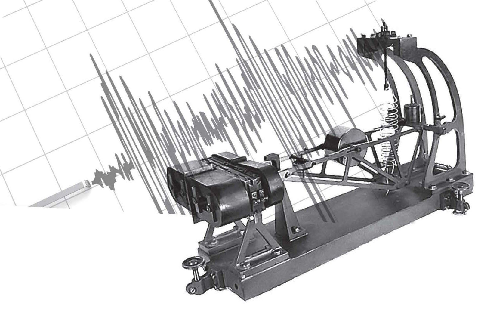 Принцип работы до-Голицынских сейсмографов Юинга, Грея, Милна: маятник принимает сейсмические волны, механические увеличительные рычаги преобразуют (увеличивая до различимости штриха) импульсы: от маятника до пера, пишущего по закопченной пластине. Сравню это с каскадом усиления электронных импульсов. Но по Третьему закону Ньютона, забирая импульс у маятника – рычаги передают ему противодействующий момент. Так в итоге трение пера о бумагу «тормозит» маятник – пропорционально квадрату увеличения амплитуды. И чтоб «отдача не загасила» маятник – наращивали его массу. В итоге в сейсмографах Вихерта масса почти семиметрового маятника была 1,2 тонны. Вертикальный маятник на сейсмической станции Геттингена, как пишет исследователь А. Я. Сидорин (Сборник научных трудов. Объединенный институт физики Земли им. О. Ю. Шмидта, 2002), имел массу 17 тонн!