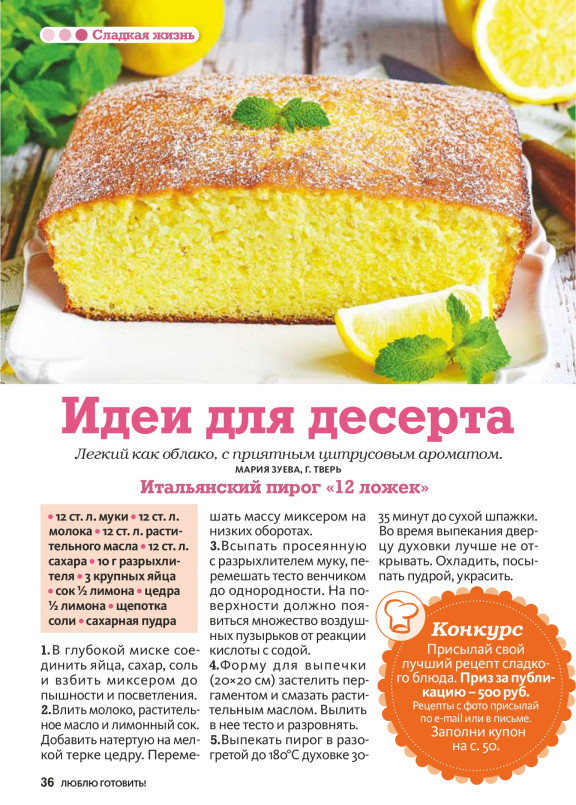 «Добрые советы. Люблю готовить!» — журнал о вкусной еде, не похожий на другие кулинарные издания. Все опубликованные в нем рецепты присланы в редакцию самими читателями. Каждый рецепт прошел конкурсный отбор, а его автор получил денежный приз. Ежемесячно на страницах журнала — более 100 коронных блюд, которые многократно проверены опытными хозяйками и которые можно смело брать в свою коллекцию рецептов тем, кто любит баловать родных и удивлять гостей. С помощью журнала легко составить меню полноценного обеда или приготовить ужин на скорую руку, соблюдать пост или устраивать пышные застолья. А еще — в совершенстве овладеть кулинарным искусством под руководством шеф-повара, который дает в каждом номере несколько мастер-классов!