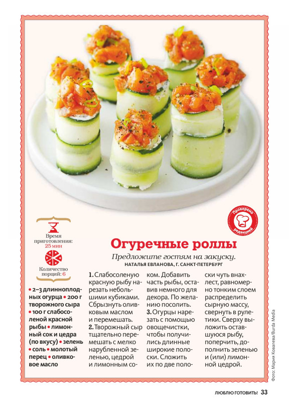 «Добрые советы. Люблю готовить!» — журнал о вкусной еде, не похожий на другие кулинарные издания. Все опубликованные в нем рецепты присланы в редакцию самими читателями. Каждый рецепт прошел конкурсный отбор, а его автор получил денежный приз. Ежемесячно на страницах журнала — более 100 коронных блюд, которые многократно проверены опытными хозяйками и которые можно смело брать в свою коллекцию рецептов тем, кто любит баловать родных и удивлять гостей. С помощью журнала легко составить меню полноценного обеда или приготовить ужин на скорую руку, соблюдать пост или устраивать пышные застолья. А еще — в совершенстве овладеть кулинарным искусством под руководством шеф-повара, который дает в каждом номере несколько мастер-классов!